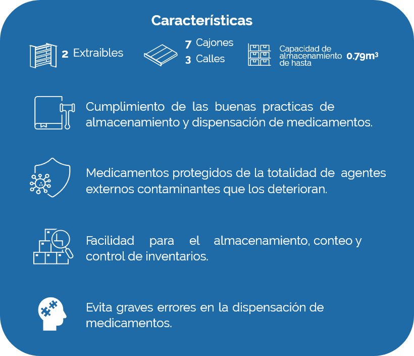 Optimización de espacios para almacenamiento de grandes cantidades de medicamentos.